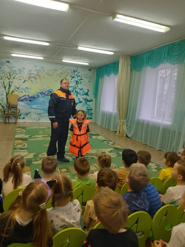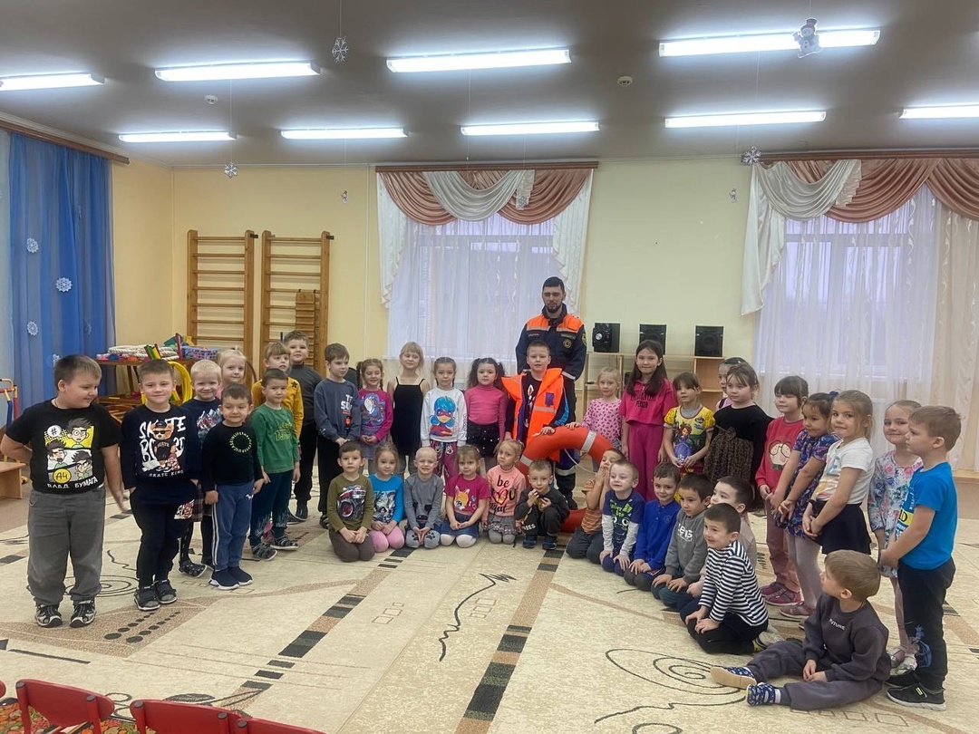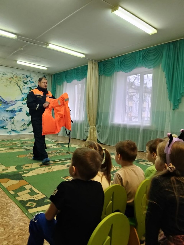Профилактическое занятие для старших дошкольников с привлечением спасателей МЧС. Занятие организовано в рамках мероприятий по безопасности на водных объектах в осенне-зимний период.